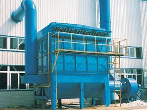 含塵氣體從中箱體上方進入除塵器,經濾袋過濾后在袋內自上而下流至凈氣聯箱匯集,再從下部排氣口排出。在上箱體和凈氣聯箱中均裝有噴吹管。清灰時,上、下噴吹管同時向濾袋噴吹。各排濾袋的清灰由脈沖控制儀控制,按順序進行。