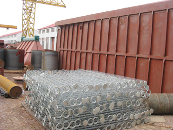 圓形骨架的工作原理是:含塵氣流通過進口煙道進入文丘里,在喉部的入口被水均勻的噴入,由于煙氣高速運動,因此噴入的水被其溶化成細小的水霧,濕潤了煙氣中的灰料。